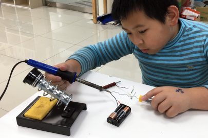 在自製陀螺時的問題幾乎都是孩子自己解決的,不過電磁鐵就可是孩子從來沒碰過的領域!於是我們花了一些時間複習極度有限的電與磁的概念,事實上孩子會的並不多,電學的部分只會串聯和簡單的並聯、磁學的部分也只知道同性相斥及異性相吸。