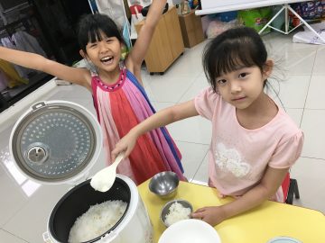 有了先前的學習和農人餐桌的加持,孩子決定要做健康壽司(飯糰)和可口現打果汁。