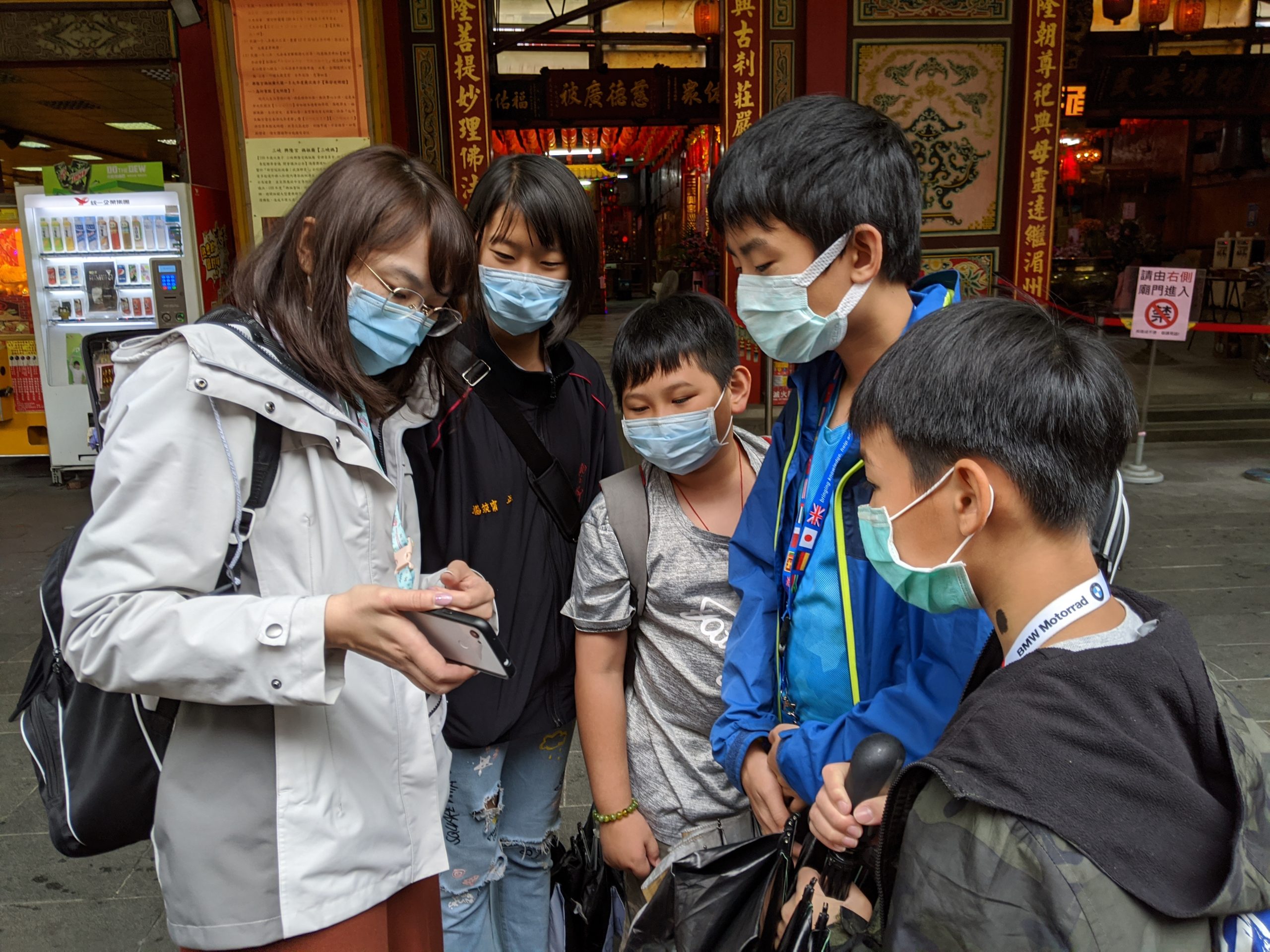 拿著課本,一次對很多孩子說話?